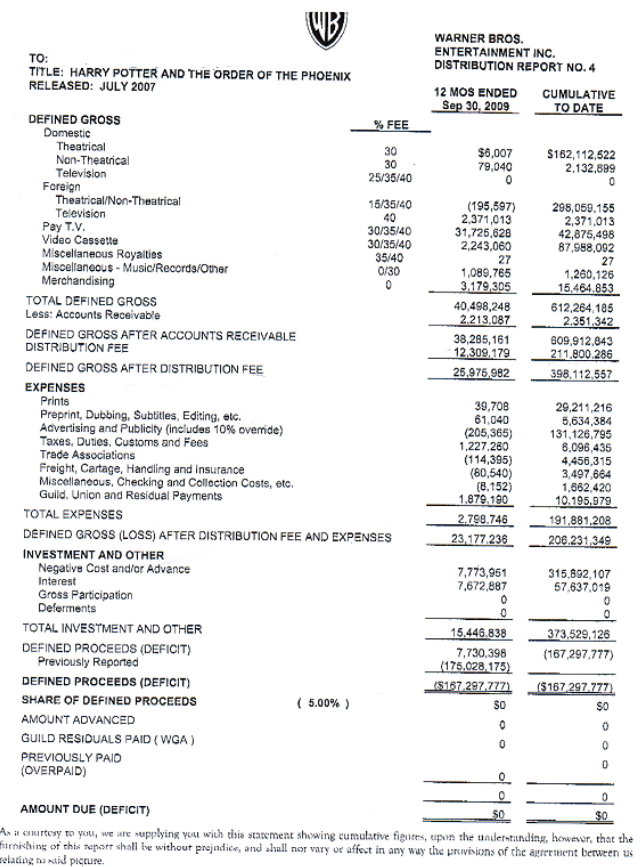 Ei bine, WB zice că nu, că a ieșit pe minus 170 de milioane de dolari conform contabilității de mai jos.